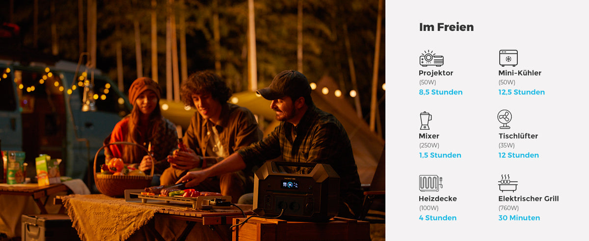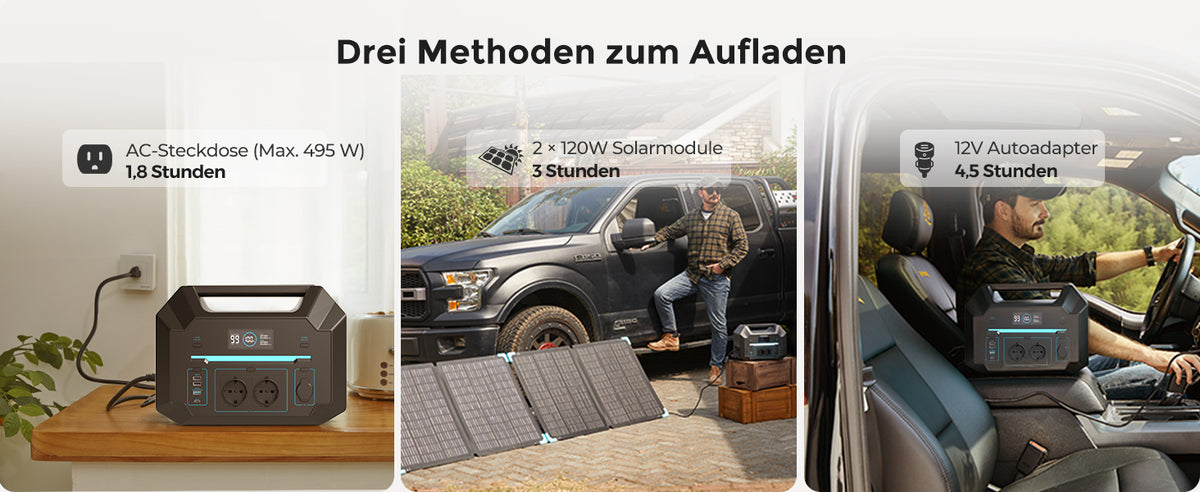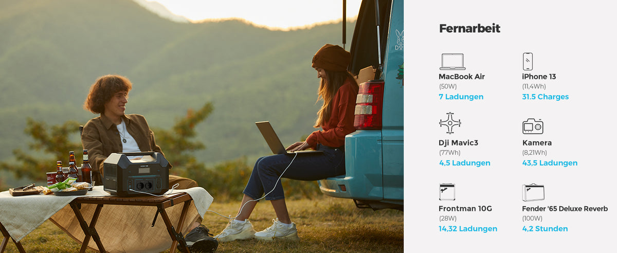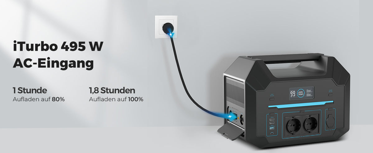 Die PHOENIX 500 ist die perfekte Lösung für alle Ihre Bedürfnisse. Ausgestattet mit einem 495-Wh-Lithium-Ionen-Akku und einem 800-W-Sinus-Wechselrichter bietet sie Ihnen ausreichend Energie für jeden Moment unterwegs. Die PHOENIX 500 kann bis zu 8 Geräte gleichzeitig mit Strom versorgen und sich dabei selbst aufladen. Dank der iTurbo-Technologie erreichen Sie mit der PHOENIX 500 in nur einer Stunde 80 % ihrer Kapazität. Drei Ladeoptionen (Netzstrom, Solar und Auto) sorgen für einen schnellen Energieschub, selbst unter widrigsten Bedingungen.