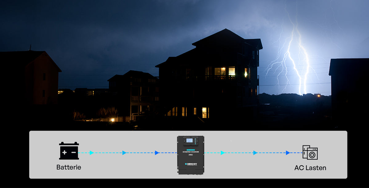 Laden Sie Ihre Batterien effizient und versorgen Sie Ihr Zuhause mit stabilem Netzstrom – für kontinuierliche Energie und maximale Einsatzbereitschaft.