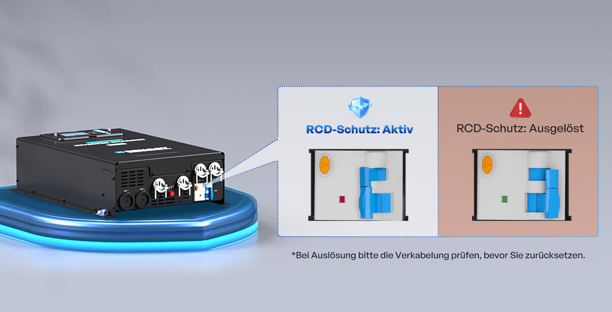 • Integrierter RCD-Schutz sorgt für Sicherheit ohne zusätzliche Module