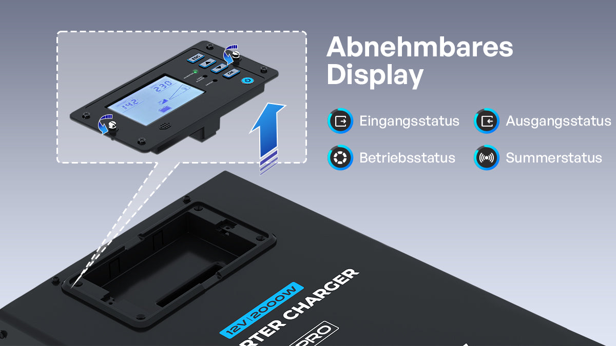Das Display kann abgenommen werden, um es aus der Ferne zu steuern oder die Daten über ein Bluetooth-Modul bequem auf Ihrem Smartphone zu überwachen.