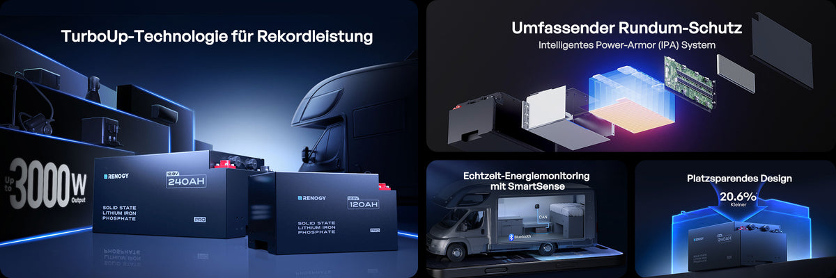 Die Renogy Pro S1 LiFePO4-Batterien liefern konstant über 3000 W Leistung* und betreiben damit 99 % der Geräte in Ihrem Wohnmobil – wie Klimaanlagen, Kaffeemaschinen oder Haartrockner. Dank starker Spitzenleistung ist auch der gleichzeitige Betrieb von Mikrowelle, Mixer und Hochleistungsgeräten möglich. So müssen Sie das ganze Jahr über nicht auf Komfort verzichten. *Basierend auf dem Modell Pro S1 240.